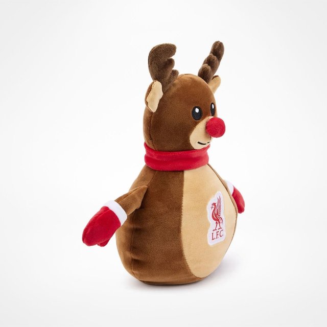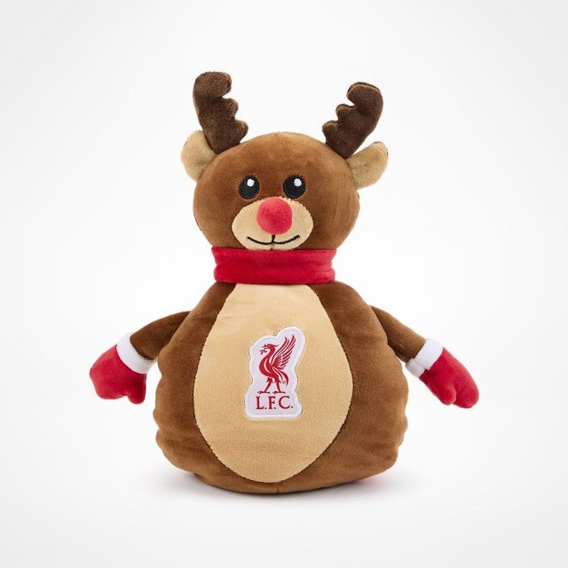 Liverpool logolla varustettu pehmolelu poro jonka korkeus on n. 26 cm.