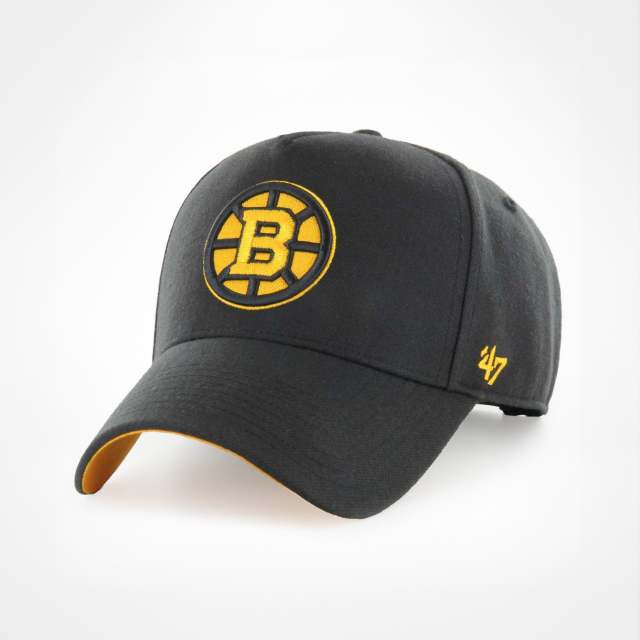 Show your support for the Bruins with this super clean and classic cap from '47 Brand. This design is perfect for those who prefer a discreet, yet distinctive team affiliation, with its all-black base and a huge, centrally embroidered colorful logo. The cap has a structured crown and slightly curved brim, which gives it a modern and sporty silhouette. The contrasting yellow underside of the brim adds a nice pop of color. This MVP model has an adjustable fit at the back, making it the ultimate choice for game days or as a stylish everyday accessory. Get yours today and represent the Boston Bruins!